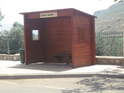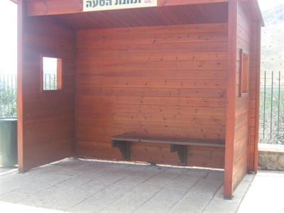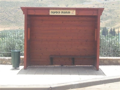 תחנת הסעה שילוב של עץ ופלקסי גלס